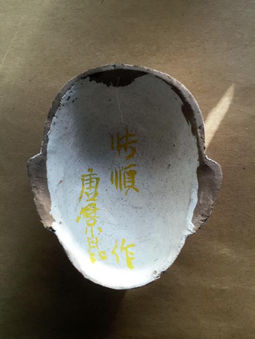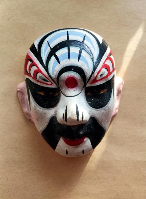 彩塑京剧脸谱第二代传人唐景昆的作品(正反面)。
