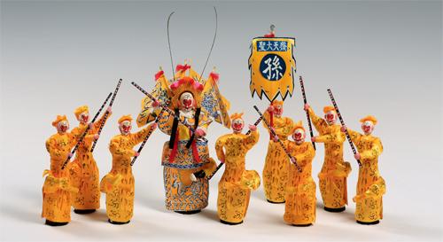 戏装小人名为鬃人,外形看起来与皮影戏中用兽皮或纸板做的小人有几分相似,都是筒式身子,衣裤连缀不分。但脸谱和把式则是受京剧的影响,以表现京剧人物为主,还曾在皇帝小玩意儿的展览中出现过,可见鬃人也应是出身高贵。