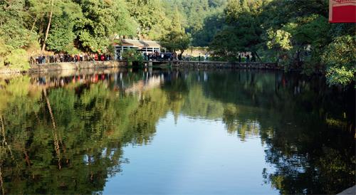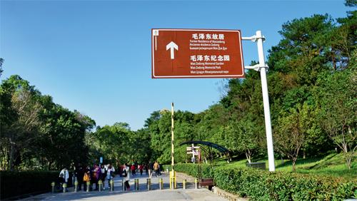 韶河畔,柏油路两侧行树成荫,织成幽深的绿廊。我从立在路边的指示牌上知道,我们脚下正在行走的每一寸土地,都是全国重点文物保护单位的一部分,是全国爱国主义教育基地的一部分。这里经多次维修,已大体还原岁月深处的本来面貌;这里的土地和毛泽东故居一样被完整地保护了起来。