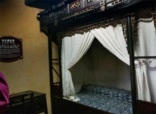 刘少奇故居的陈设陈旧而简单,是素朴类型的。床基本属于当地农家的统一模式,放到今天却成为收藏界的珍品,因为在生活中早已被淘汰了,成为有强烈文化符号的文物。筒陋的方桌,煤油灯也是当今的珍稀物品,深刻着岁月和文化的印迹。