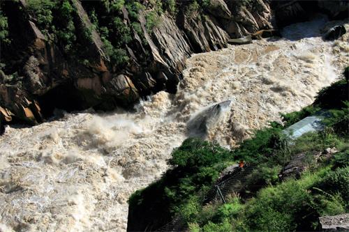 上虎跳,那块传说中的虎跳石在巨流狂涛中时隐时现。