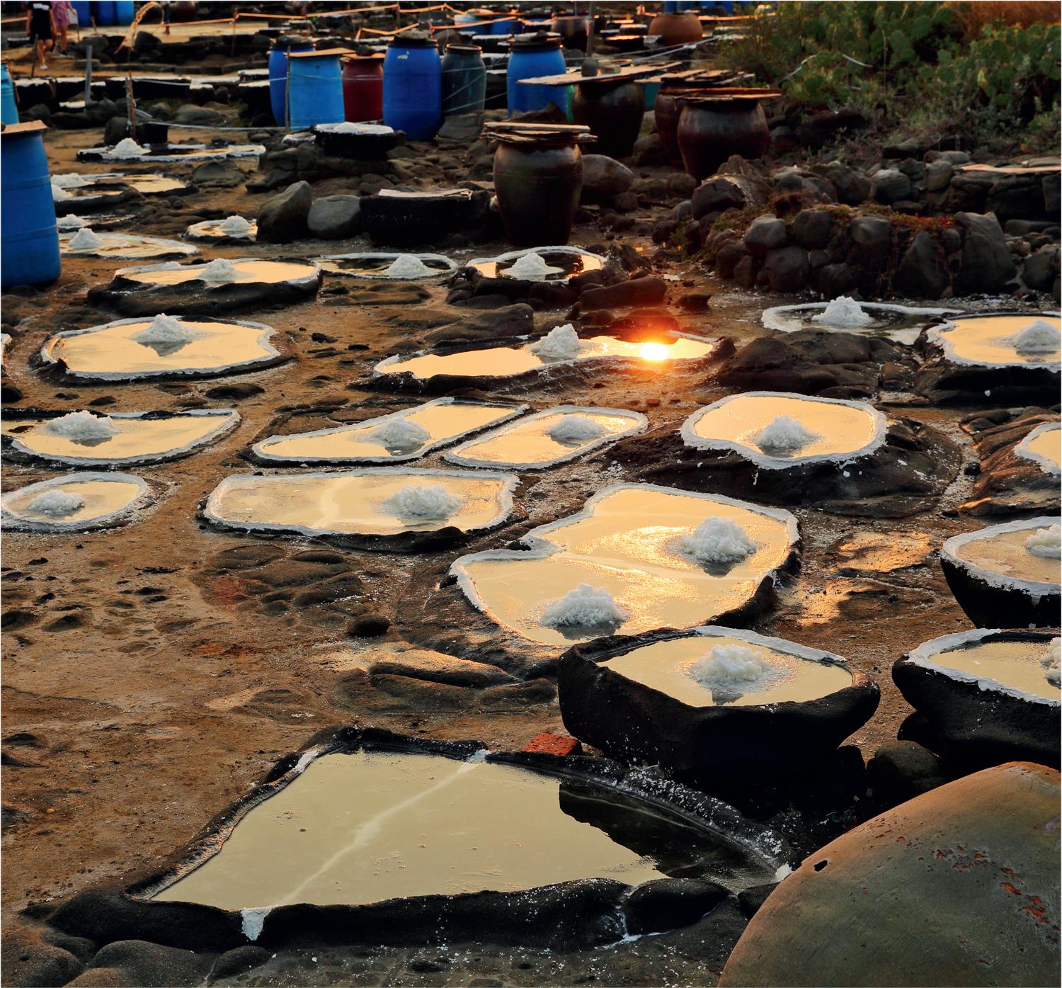 中国最早的食盐是海盐,海盐晒场自然都是沿着海岸线分布。至今,在中国长达1.8万多公里的海岸线上,就分布着长芦盐场、莱州湾盐场、淮盐盐场、莺歌盐场、布袋盐场等多家规模不一的海盐场,而且制盐工艺也大多都融入了现代信息和技术。但散落在海南儋州境内五彩湾、新英湾海岸的多处古盐田,还保留传承着古法制盐的传统方式,即原始手工晒制盐技艺。虽然笨重辛劳,且产量又低,但这里一代又一代的制盐工匠们,日复一日一直坚守着古法,从未间断。不仅千年前原始的制盐方式没有改变,场址、规模至今也都没有改变,完整地保存在现代环境中,是人类文化遗产。
