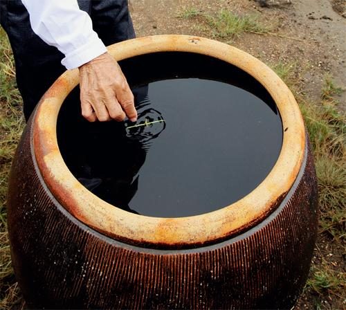 黄鱼茨草棍浮在卤水上面,含盐率就超过50%,在晴天这缸卤水就可晒盐了。