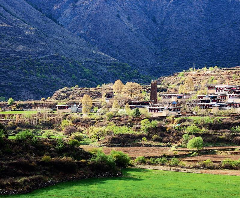 前往四川甘孜藏族自治州道孚县的途中,要经过丹巴县。只见大渡河对岸的山坡上,耸立着一座座藏式碉楼。这些碉楼历史悠久,曾发挥过极为重要的军事作用。而位于墨尔多神山脚下的丹巴美人谷,则是一个著名的出美女的地方。当地空气清新,山清水秀。
