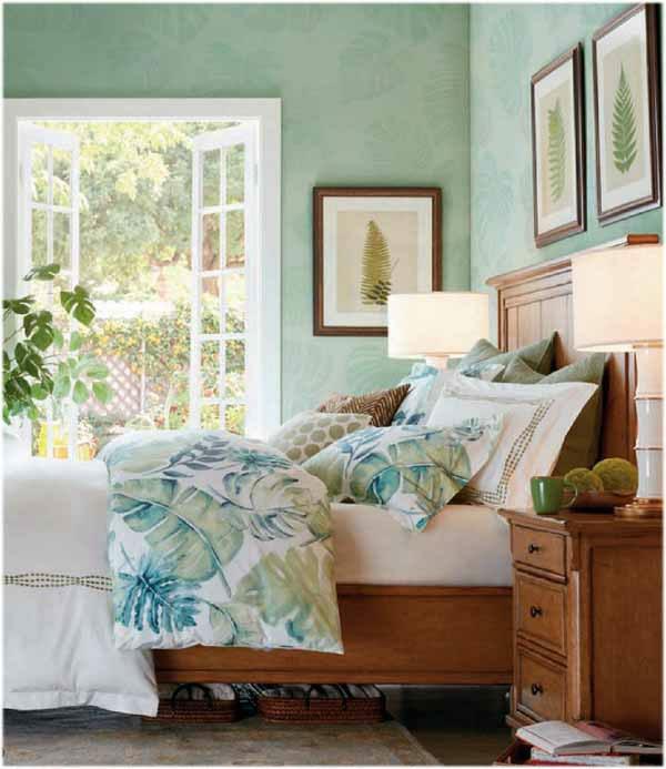 清新风格的家居在选择色彩时,多选用淡雅的颜色,如浅绿色、白色、麻色等。绿色是小清新装修风格中经常会用到的一种颜色搭配,置身满眼绿色的空间瞬间让人有一种神清气爽的感觉。整洁大方的墙面,让整个房间变得异常素雅,让满眼的绿色之中有了一丝白色营造的纯净。花色的被子与整个房间的色调结合起来,带来生机无限。