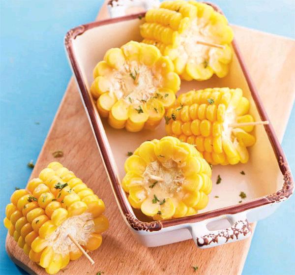 2根水果玉米/20克煉乳水果玉米洗净,去掉头尾和玉米须后切段。在玉米表面刷上炼乳,盖上盖子,放入微波炉高火转5分钟即可。