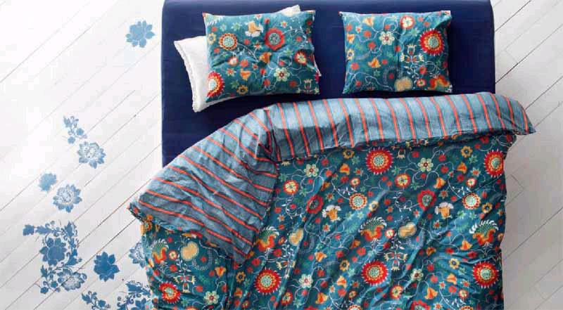 采用传统瑞典图案的被套是设计师EVa Lundgren从一家地区博物馆中永久珍藏着17世纪的纺织品中获得的灵感。17世纪的妇女们从很小的时候就开始织布攒嫁妆,这些成品将在她们出嫁后用来装点新家,不仅外形美观,更蕴含真实的历史故事。被套一面采用花朵图案,另一面为条纹图案,呈现以传统手工艺为灵感的百搭设计。即使是置于以红色为主色调的空间内也显得毫不突兀,大面积的红色中加入一点冷静的蓝色,使得热烈的环境中增添了一种平衡的美感,同时又不会掩盖红色的活力和光芒,奇妙的搭配为生活创造出无限精彩的可能。