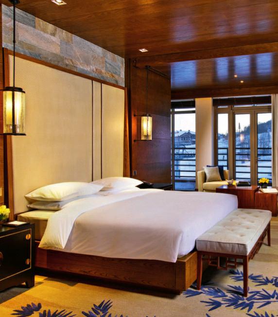 凯悦客房回归大自然本色,温馨的室内设计风格与窗外的原生态山景相映成趣。酒店的278间舒适客房,包括33间豪华套房,环绕顶级滑雪场、壮丽名山、原始森林,将山野风情、绝美风景尽收眼底。宽敞舒适的客房均为住宅式设计风格,使用面积从45平方米起。客房里还有贴心的空调加湿系统,呵护肌肤,免费有线及无线网络的网速超级快。卫浴设施是世界顶级品牌德国汉斯格雅,洗护备品是专为凯悦配置的Portico,里面含有很多天然植物成分。酒店一楼设有专属尊贵的嘉宾轩,入住行政客房的宾客可在此免费享用精致早餐、全日畅饮各式饮品、晚间鸡尾酒、快速入住登记及退房服务以及免费享用会议设施等。站在阳台眺望远方,270°雪山环绕的风景跃入眼帘,灯饰勾勒着度假区的建筑呈现的暖黄色线条让这里的夜色更加静谧唯美。