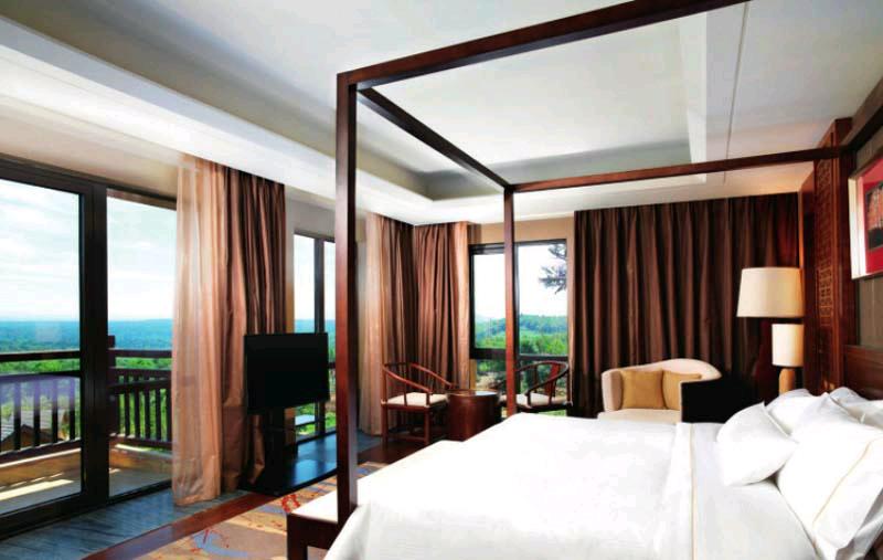 从长白山万达喜来登度假酒店走过独特廊桥可以到达长白山万达威斯汀度假酒店,这两家酒店是喜达屋酒店及度假村集团旗下亚太区首家以滑雪为主题的双品牌酒店。住客可以共享这两家姐妹酒店的设施,获得独特而曼妙的旅行感受。一步入威斯汀套房,清新的木香扑鼻而来,套房里使用大量的原木装饰,一副将北美的风情进行到底的感觉,房内的威斯汀天梦之床,铺设双层床垫与十层纯白床单,缔造舒适酣眠享受。威斯汀白茶卫浴用品和柔软浴袍带来极致呵护。时尚舒适的客房拥有超大的空间,高品质的黑木结合柔和的自然色调,为温馨的客房营造出了别致的中式风格。宽敞的大理石浴室设有雨林淋浴间和独立浴缸,令下榻的宾客每个早晨都能容光焕发。