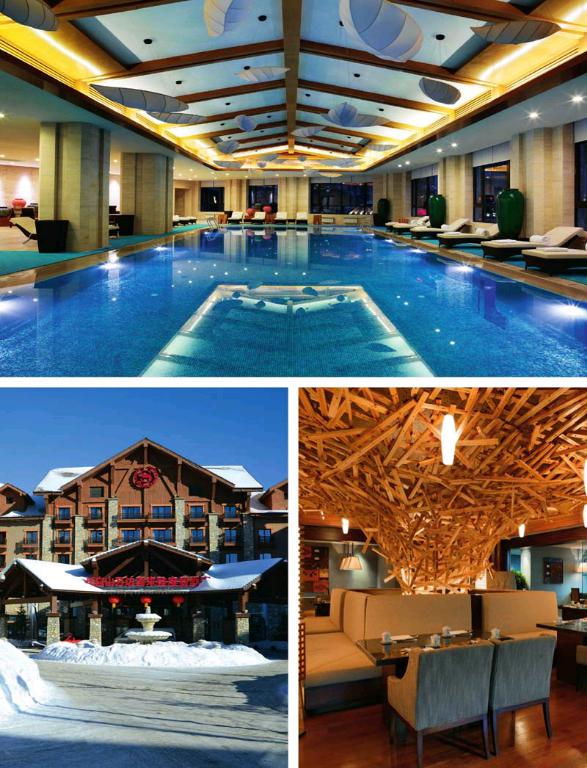 长白山万达假日度假酒店由木制欧式建筑群组成,设计灵感汲取于当地原生态美景,步行至度假区内的白桦高尔夫球场仅需5分钟。368间客房兼具舒适性与多功能性。融入当地特色的“吉咖啡”全日制餐厅,既可享用琳琅满目的中西方美食,又可品尝到长白山的山珍野味。吉咖啡推出“冇米粥火锅”,倡导健康饮食理念,用冇米粥来烫食更是一绝,不仅保持烫菜鲜嫩,而且天然去腥,滋补养生。在滑雪或泡温泉之后,约上家人或好友,一起品尝冇米粥火锅,让这个冬天倍感温暖。配备超大壁炉的大堂吧,环境温馨。享用过晚餐,不能错过度假区内唯一的怀旧主题酒吧——“峰”吧,每晚歌手倾情驻唱,还有精心挑选的优质啤酒,美酒与美妙旋律的碰撞,给度假之旅增添一抹亮丽的色彩。