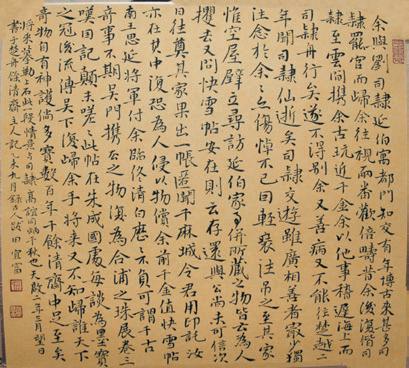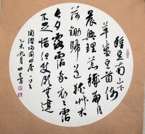 与笔墨对话,即是与书者的最好交流。观田宜富的书法作品,意境高古旷达,笔锋清健,行笔顿挫有度,节奏刚毅明快,极具魏晋风韵。对于他人的夸奖,田宜富总是略略一笑,认真地说:“学书法,须经过千锤百炼,认真学习古人的东西,而我只是在不断的学习过程中。”