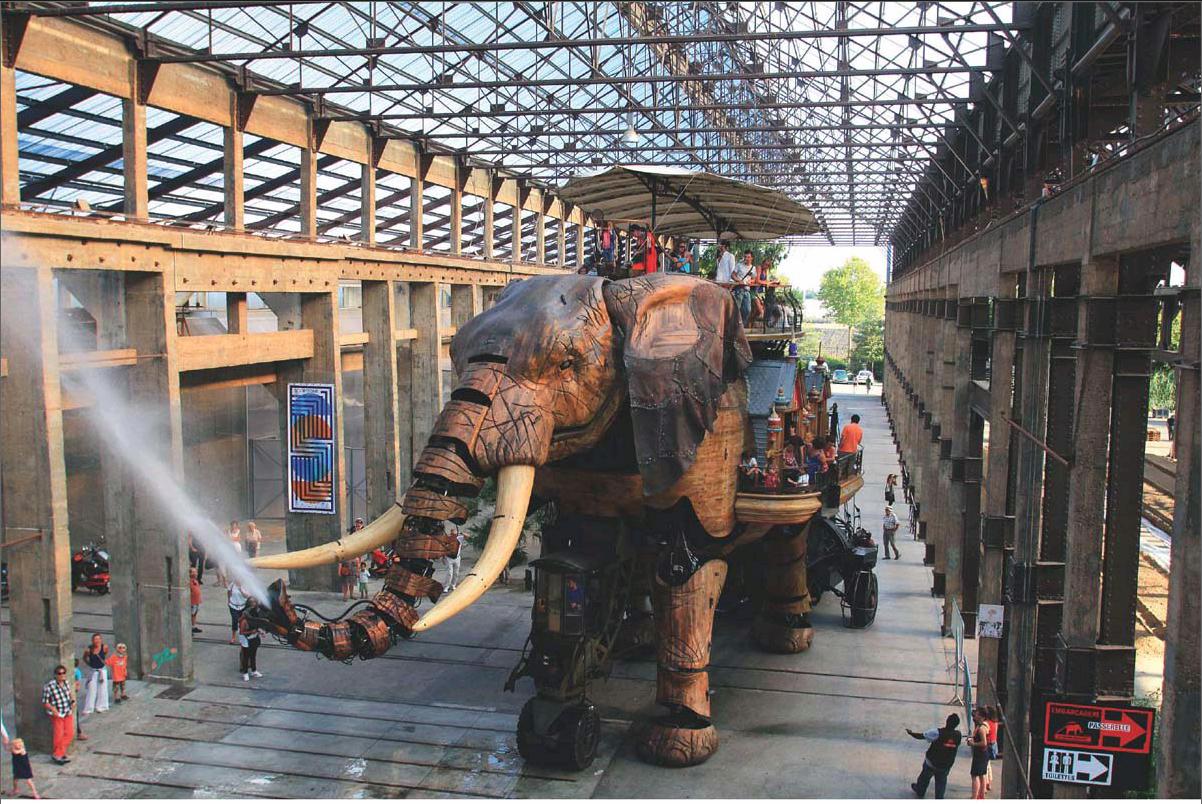 在卢瓦尔河岸边,您可以爬到机器岛(Machines de lile)的大象或者大蜘蛛身上,由它们带领您闲逛一圈!无论白天黑夜,南特的市中心都热闹非凡,例如:保留中世纪氛围的犹太街区(quartier de la Juiverie)和布菲街区(quartier du Bouffay),以及极具节日氛围的新场所香蕉仓库(Hanqara Bananes)!在购物方面,各家商店的橱窗和招牌倍增吸引力,集大成之地是著名的波莫雷廊街(passaqe Pommerave)。