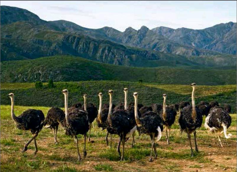 小卡鲁地区的奥茨颂是世界鸵鸟之都,气候干燥,一座座鸵鸟农场矗立在苍茫的大地上。在这里,你有无数机会可以和鸵鸟零距离接触,同它们长着长长睫毛的大眼睛安静地对视,可以让这些神奇的动物伸出长长的脖子,从你摊开的掌心中直接啄食饲料。你可以在一旁观看专业骑师骑着这些世界上奔跑速度最快的鸟类一路疾驰,并为他们呐喊助威,也可以在工作人员的指导和帮助下,自己也骑上去试试。另外,根据来访者不同的体重情况,你还可能有机会站在鸵鸟蛋上——别担心,鸵鸟蛋的外壳非常坚韧,一般来说承受一个成年人的体重完全没有问题,蛋碎的可怕状况并不会出现。