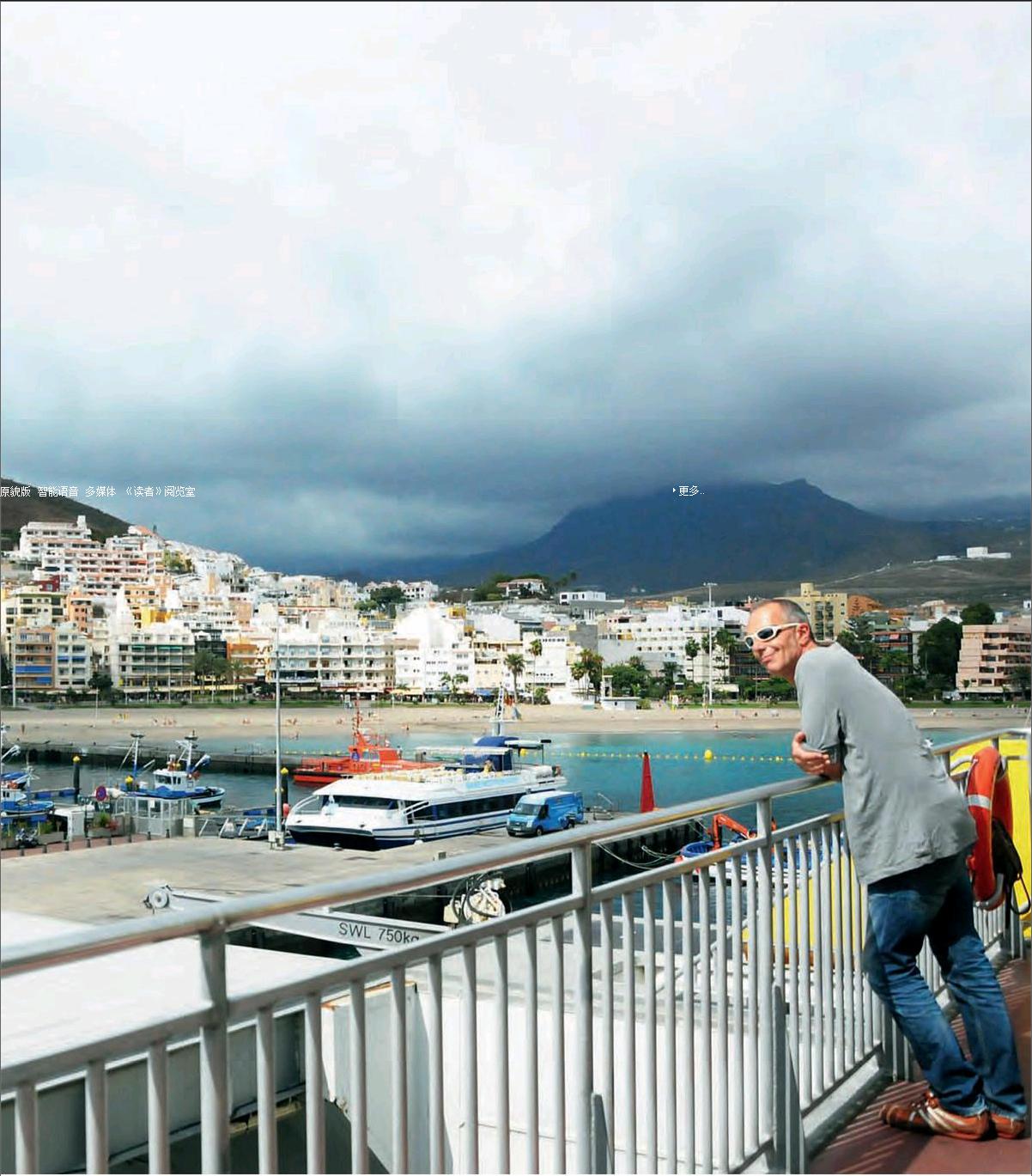 乘坐国航从北京出发,经过13个小时的飞行,到达了西班牙马德里。之后登上Air Europa的小型飞机,眼前的风景便从红土转为了海蓝。说长也不,3个多小时后飞机安全降落在了特纳里费岛。坐在从北部的机场前往南部码头的大巴上,iPad mini适时放着Hard Rock Sofa & Swanky Tunes演唱的《速度与激情6》电影主题曲“Here We Go”一路上盘山路,眼前风景迅速间快闪而逝。不到三十分钟,到达南部的码头,在登上前往拉戈拉梅岛的渡轮之前,我坐在海边的石堤上,静静地欣赏了这个富裕的海岛。最为惹眼的还是泰德火山,这座与云海相伴的欧洲最高山峰,将是这一路上天天见的风景。靠近码头的特内里费岛小城房子都是白色的,与海湾里停靠的私人游艇相得益彰。不少餐厅和咖啡店就开在海边,鲜花和绿植装饰着,零星几个游客从你身边走过,好奇地打量着这位来自东方的陌生人。临近傍晚开始起航了,海风有些微凉,船上竟然有WIFI,于是把几张照片发在了微信朋友圈里,不一会儿,给远方的朋友沸腾了,连连称赞“这也太美了”。微笑着喝着热咖啡,拂起被海风吹乱的头发,虽然没有三毛那浓密的长头发,在风中舞不出那么美妙的弧线,但看着身边依偎在一起的恋人们,竟然也能够那么想象到当年三毛与荷西在岛上相恋的日子。在海岛上的日子,时间被放慢了脚步,让相爱的两个人距离拉得更近了。