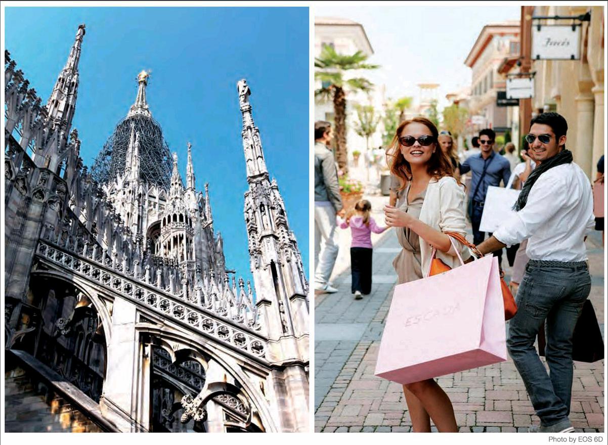 和意大利南部城市的悠闲、宁静相比,这里喧嚣得多,在城市中行走如同误闯进一场正在直播的时尚秀,街头随意响起的旋律和人声是这场秀的背景音乐,而米兰的教堂、房屋、露天咖啡厅就是T台,而每一个路人都是秀场上的模特,有休闲的、优雅的、随性的,有镂空花纹、透视搭配、优雅的线条和不规则剪裁都在你眼前行色匆匆。端着相机站在街头,庆幸自己随身携带的是佳能6D,它如同街拍利器一般,不但能用全画幅拍摄米兰大教堂的壮观全貌,也能很方便的随手抓拍一些有趣的街头小景。极简的设计让人一目了然的同时,也能快速设置参数,只需注意如何构图,便能轻松随意的完成一组组的时尚大片。