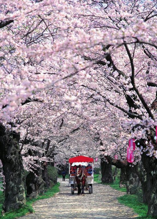 花期:3月下旬至4月上旬(有灯光照明)这座古城筑城逾400年,约800株樱花树在此争奇斗艳。在这威风凛凛的城楼周围,樱花的生命力令人感受到日本的坚强与优雅。