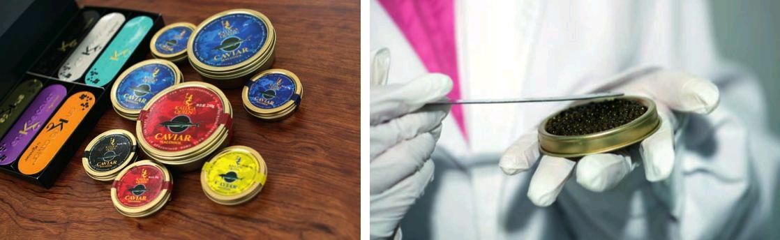 Under the overcast sky, booming oxygen generator disturbed quiet air. However, workers who were plucking sturgeons in the encircled pond seemed unfazed by the clatter, busy flipping over sturgeons as high as a person by harvesting eggs. The roe sacks, or ovaries, are opened and rubbed across mesh screens using gentle pressure from the palm of the hand -- this action separates the eggs from the membrane and they drop through the screen into a shallow tub. Inspecting staff on the bank took over the egg-removal device and scooped out the roes to the back of hands to measure the size and luster of the fish eggs, tasting the flavor before recording on the testing book. In the season of egg-harvesting, such process will be repeated each day, inspecting, marking and recording the growing condition of each hybrid sturgeon.