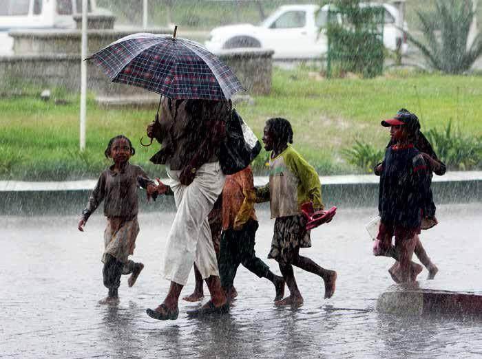 2008年,马达加斯加首都塔那那利佛。孩子们在雨中奔跑。刘卫兵 摄