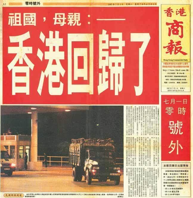 1997年7月1日零时,《香港商报》在庆祝香港回归的号外上,使用了新华社发的解放军驻港部队先头部队经皇岗口岸从落马洲口岸进入香港的数码照片。刘彦武 摄