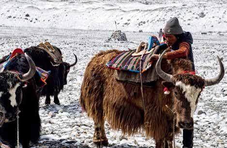 5月1日,一位牦牛工在大本营装载珠峰科考队的装备。姜帆 摄