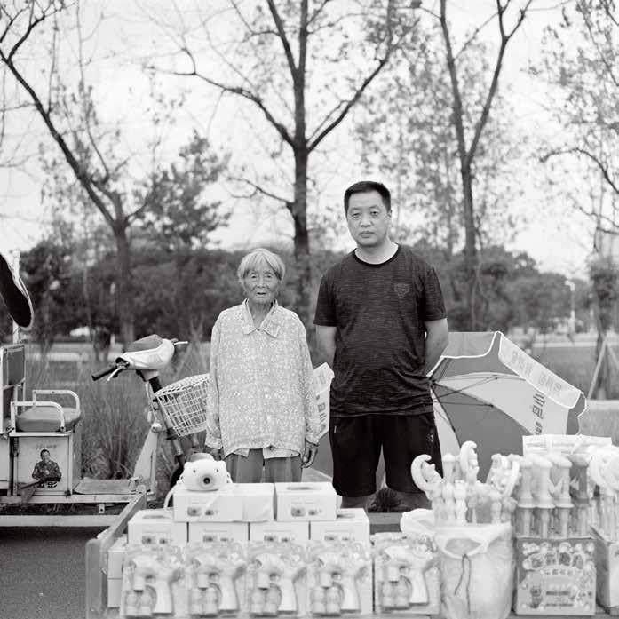 拍摄初期,我在江边认识了一对卖水和泡泡玩具的老夫妻。他们年龄都大了,腿脚不是很方便,但为了补贴家用依然天天坚持着来摆摊卖东西。我在那段时间也几乎每天与他们见面,时间长了慢慢熟悉起来,我便称呼他们为爷爷奶奶。我询问过他们一天能赚多少钱,爷爷摆了摆手不说话。某次他们的儿子下班早,便过来帮忙。我提出趁此机会给他们拍一张全家福,但是爷爷不同意,于是我只给母子拍了照。我当时一度不理解爷爷的选择,甚至心中还有些抱怨,那本可以是一张很不错的合影。后来我理解了他,他只是不愿意拍照,而我也不愿深究原因。在我的理解中,这个原因在照片之上。我不拍摄爷爷,对他来说是一种尊重。尊重是我作品的前提。