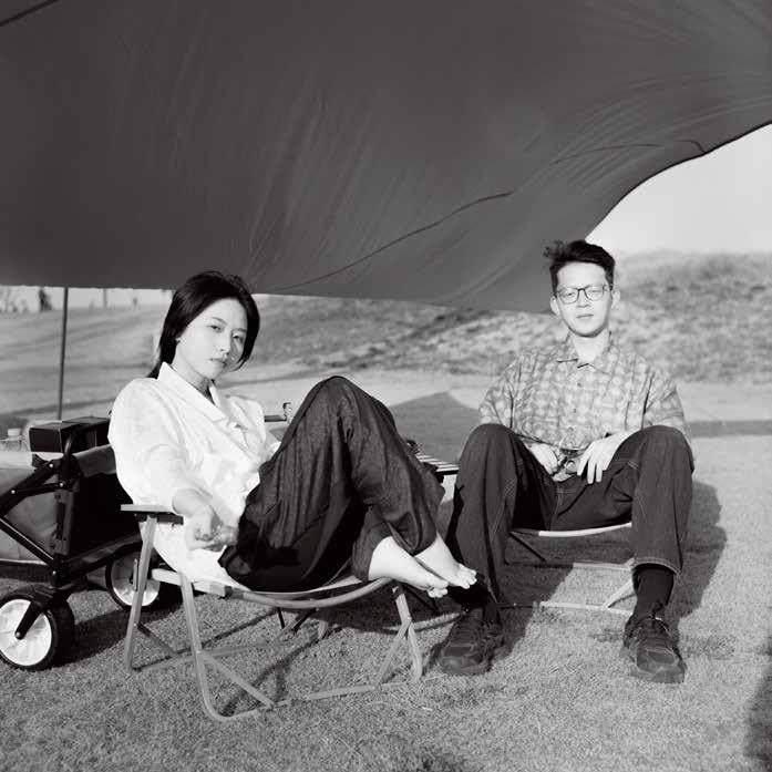 我拍摄的人之中也不乏本身喜爱拍照的人,有一些人甚至很专业。比如一对在江边草坪上露营的情侣,其中的女性在一家人像摄影机构工作,她有专业的人像摄影技能,也不缺乏自己的个人照片。她既拥有带有拍照和美颜功能的智能手机,又有专业的相机,但她仍然选择信任我为她拍照。她直视相机的勇敢、自信以及平静的眼神抓住了我,我被打动了,我的眼睛被取景框中的她牢牢吸引,甚至都来不及关注画面的其他部分。这张照片,或者说拍摄的过程让我确信自信的美,且这种美是可以通过肖像照片来传达的。接受我拍摄邀请的人,他们都表现得很自信,同时也相信我。面对陌生拍摄者和相机镜头的自信在不同个体身上表现为不同的形象,这些形象通过肖像照片呈现出来。我将这些肖像视作时代的典型视觉形象,这也是“美好时代”之名的由来。