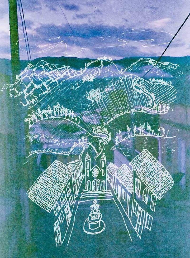 在作品拍摄之初,我并不确定要以何种方式进行创作。通常情况下,我会使用不同材料与手段表达我的观念。尤其对于《血脉是一粒种子》的创作,起初我很难找到合适的方式来讲述这个故事。在这组作品中,我想表达与殖民主义、记忆、失落等有关的主题,这些都是抽象概念,很难通过影像来呈现。后来,我决定让父亲加入进来,因为他记忆中的家乡——哥伦比亚坎迪纳马卡与我们现在所见到的景象已截然不同。因此,我尝试让父亲在照片上画出记忆中的画面。而多媒体作品中,与父亲的对话更利于传达这种失落情绪与对未来的担忧。