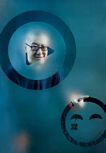 在拍摄视频网站优酷与土豆网的CEO古永锵时,我利用带有“优酷”网与“土豆”网镂空型标志的会议室玻璃墙作为拍摄场景。当时,“优酷”网成功收购了“土豆”网100%股权。画面里,“优酷”网标志后古永锵标志性的微笑,他主动将手指向小号版“土豆”网标志,恰当地表现出当时人物社会角色地位的属性,所选的道具墙也很好地帮助被拍摄者展现自身的性格面貌特征。